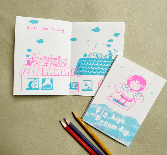 I Like Birds Zine - A6 Risograph Zine (Sky Blue and Pink colourway)